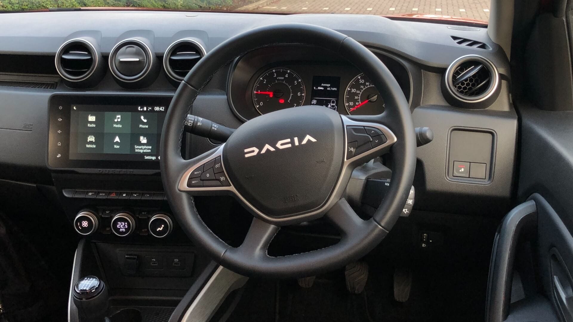 Thankfully, this Dacia has a DAB radio. More so, it has an eight-inch touchscreen and built-in maps. Surprisingly, it also features Apple CarPlay and Android Auto, which can be paired through a wire for Google Maps. Though there are two USB ports, only one will charge your phone. And while the driver display looks old, it shows everything you need to see. It’s also easy to toggle through using buttons on the steering wheel.