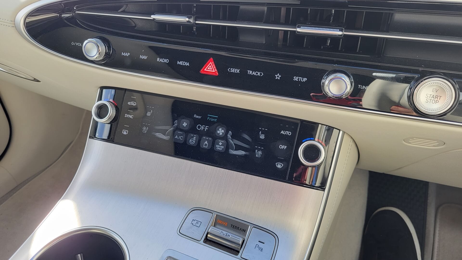 Another update of the 2025 Genesis GV70 Electrified is the 27-inch OLED display. A huge digital screen sits atop the dashboard, starting with an instrument cluster behind the steering wheel, spanning across the middle with a busy infotainment section. While the icons are large and the system is quick and easy to use, the screen seems angled away from the driver, making the far side awkward to reach. Perhaps they forgot to adjust it for those of us who drive on the right-hand side. Thankfully, a head up display feeds valuable information to the driver.